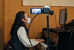 桃ちゃんの指使いも見えるようにカメラを設定 |